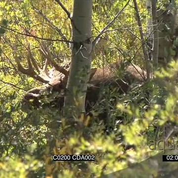 Male Moose standing and grazing around trees GREEN GOOD LIGHT