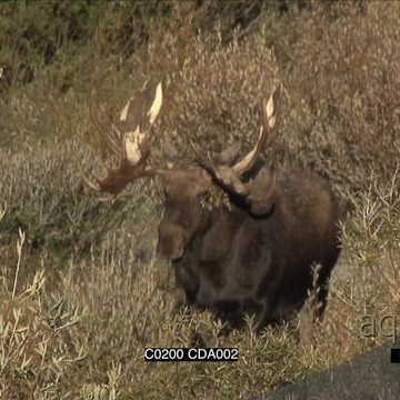 Male Moose standing and grazing then walks off WS