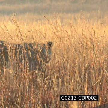Lions stalking hunting in long dry grass MS