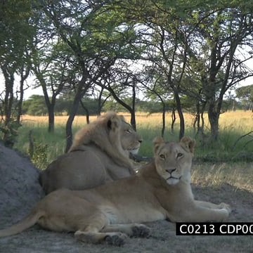 Male Lion looking at Giraffes in distance CU OTS