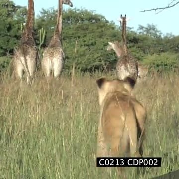 Lioness chase and hunt herd of Giraffes CU LA NTD