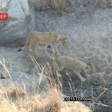 African Lion Cub Digging playing and chasing one another