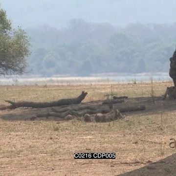 A Warthog Family searching for food under the tree and the Lioness attacks and chases them away in to the Den