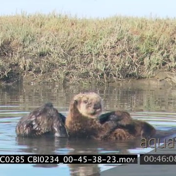 Sea Otter mother cleaning grooming young floating in the estuary DAY MS