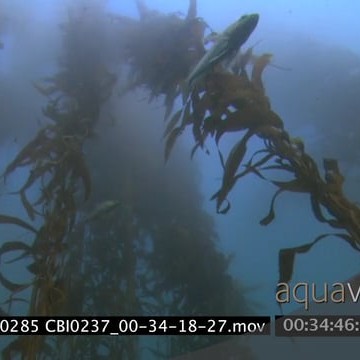 Scenic Kelp forest with fishes swimming through Misty Murky conditions UNDERWATER