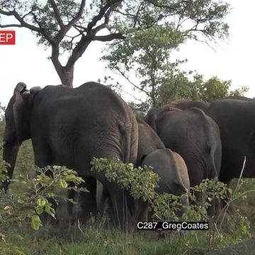 New born Elephant calfs first steps, being protected by the herd after birth AmCam