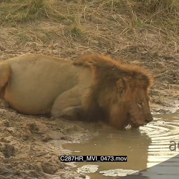 Lion Male drinking muddy water them walking off MS PAN ZOOM