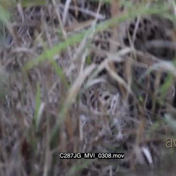 Leopard laying down in bushveld and growling MS MCU ZI ZO FOCUS PULL HAND AmCam