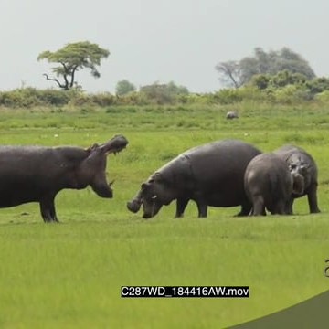 Hippo Sneak Attack. A territorial dispute between a male and a female Hippo that’s protecting her young calves. Third Hippo charge in and attack male from behind. AmCam