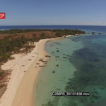 AERIAL of the Madagascar Island and boats on one side of the Island GOOD LIGHT