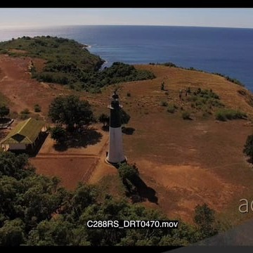 AERIAL of the Madagascar Island light house on the island GREEN