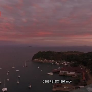 AERIAL of Krakatea Island and boats that sailed into Krakatea Island SUNSET