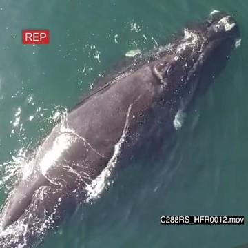 AERIAL of Southern right whales swimming