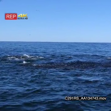 TOPSIDE a group of seals and a school of common dolphins swimming, porpoising and feeding on a bait ball of sardines
