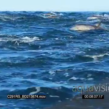 A school of common dolphins swimming and porpoising GOOD LIGHT PROFILE TOPSIDE