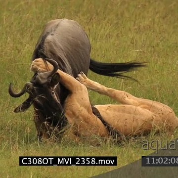 Lioness hunt and suffocate Kill Wildebeest AmCam
