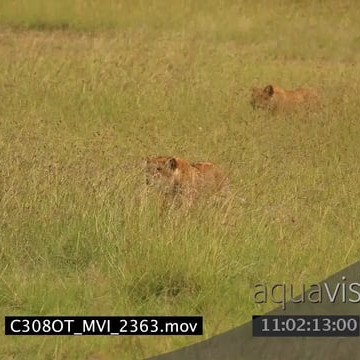 Young lion cubs coming towards Wildebeest kill to feed on carcass AmCam