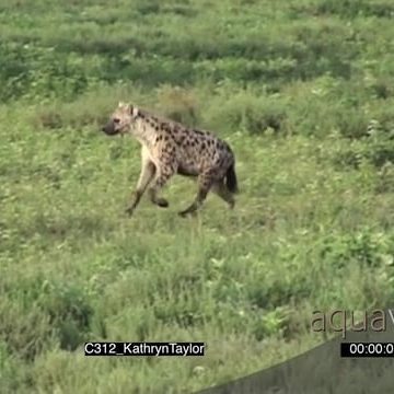 Spotted Hyena running towards Wildebeest carcass SLOW MO