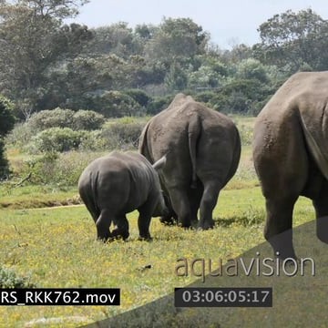 White rhinos 2 Adults and calf grazing on grassland GREEN 4K