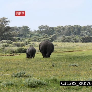 White rhinos 2 Adults and a calf grazing on grassland GREEN 4K