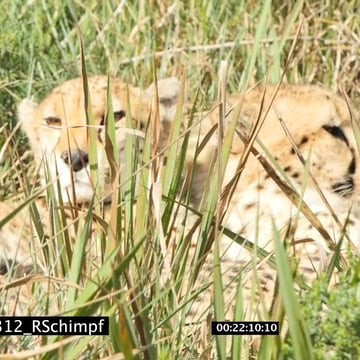 A coalition of cheetahs resting on tall grassland SCENIC GREEN