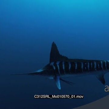 Marlin sailfish swim past in deep blue ocean UW