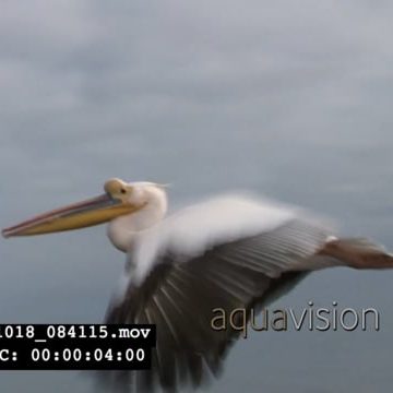 Pelicans flying next to camera AmCam