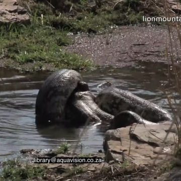 Indian Python moving killing and swallowing Spotted Deer in a pond MWS