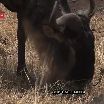 Blue Wildebeest standing on grass and grazing MCU HAND