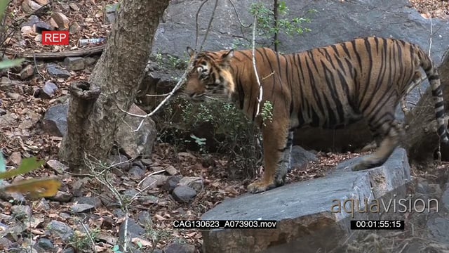 Tiger walking and patrolling area in Indian woodland forest HA WS MLS ZI ZO PAN AmCam