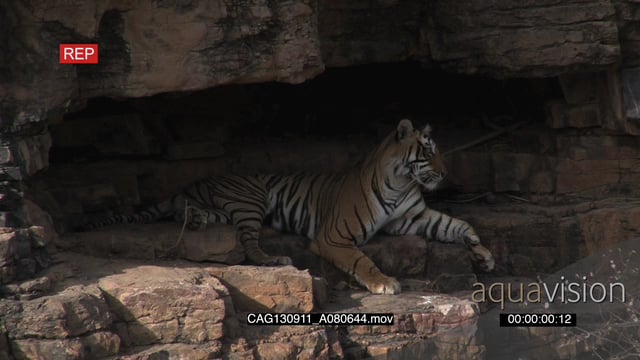 Tiger resting on a cliff face rubbing MWS