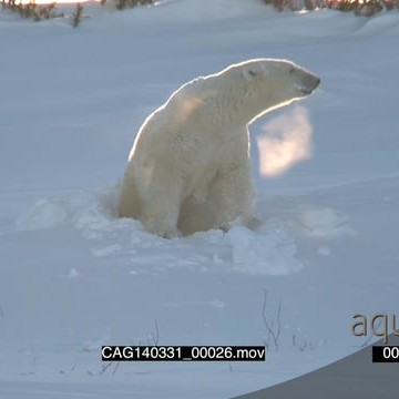 Polar Bear female out of winter den scouting around shaking snow off