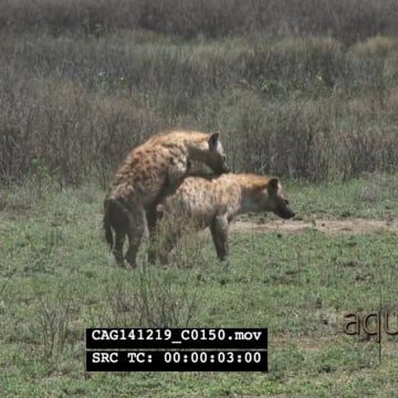 Spotted Hyenas mating on bushveld LS HAND