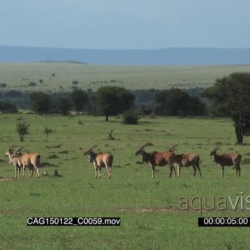 Eland herd standing moving and grazing on Savannah WS HAND