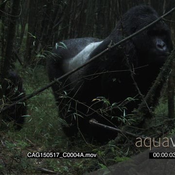 Mountain Gorilla and juvenile standing in forest MLS HAND