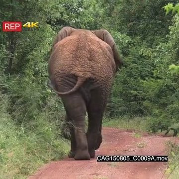 African Elephant walking away from camera in bushveld LS HAND