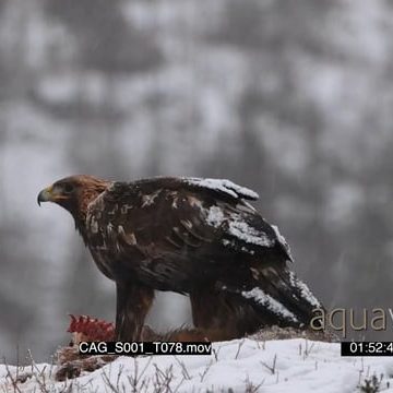 Golden eagle feeding on red fox while snowing heavily ALERT BLOODY SNOW