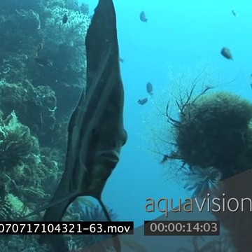 Longfin Batfish swimming on coral reef underwater in ocean MLS HAND