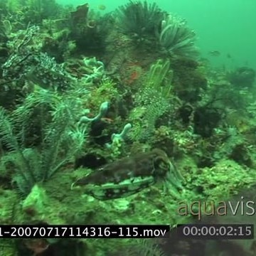 Cuttlefish swimming underwater in ocean and one changing colour 2S MLS HAND
