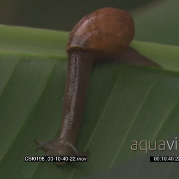 Snail on leaf retreating into shell slowly re-appearing again DAY MS