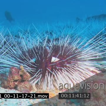 Sea Urchin vagrant slowly moving over ocean floor with Yellowfin goatfish Stingrays swimming above urchins stalking