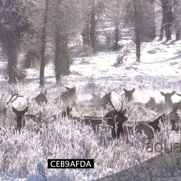 Scenes of Elk herd walking on prairie during snowfall XWS WS