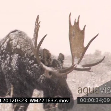 Moose walking on prairie during snowfall MLS PAN