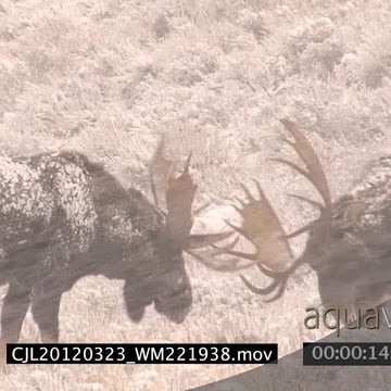 Mooses fighting on prairie during snowfall then one walking away 2S LS