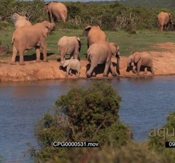 African Elephant Herd Moving away from the Water
