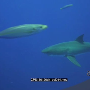 Great White Shark swimming underwater in ocean MLS PAN HAND