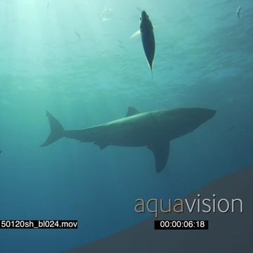 Great White Sharks (2) cruising underwater in ocean GOOD LIGHT PROFILE