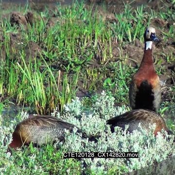 A Small Flock of Egyptian Goose standing on riverbank drinking and preening MWS