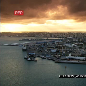 Scenic Durban habour area golden clouds covering over city