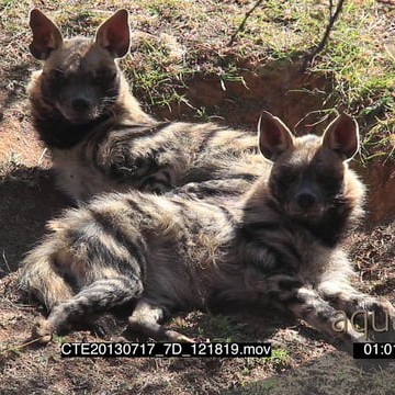 Pair of Aardwolf’s resting grooming alerted look towards camera